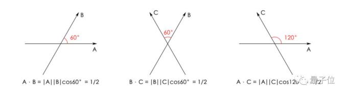 再去计算每两条向量之间的点积: