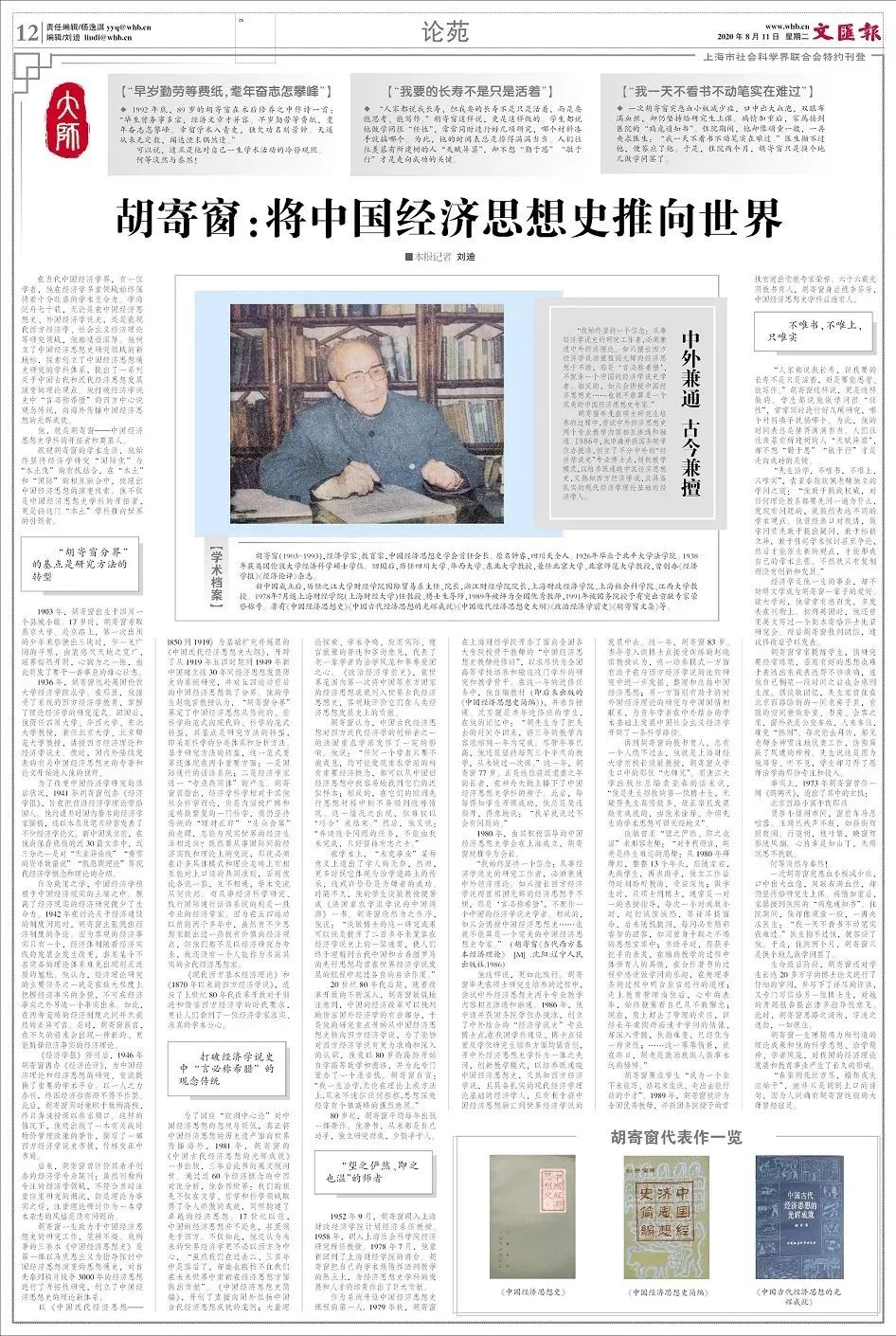 原标题:《礼赞大师 | 胡寄窗:将中国经济思想史推向世界》
