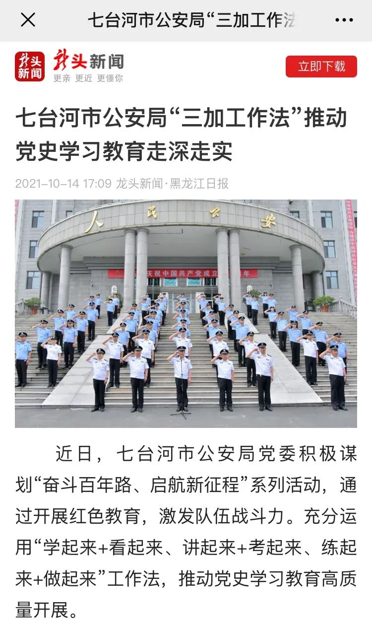 原标题:《【微警在线】《黑龙江日报》:七台河市公安局“三加工作法”推动党史学习教育走深走实》