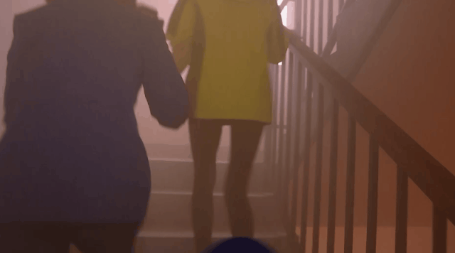 请往下疏散逃生,尽量不要待在屋内,以防火灾蔓延或遭遇爆炸等其他险境。