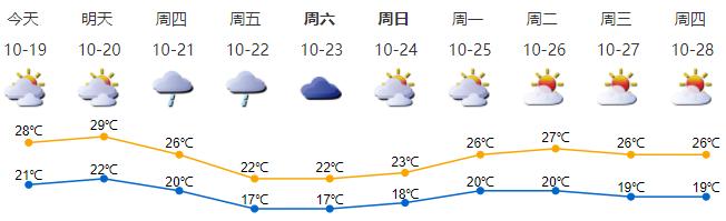 我市多云间晴天;气温21-28℃;东北风2-3级;相对湿度50%-80%。