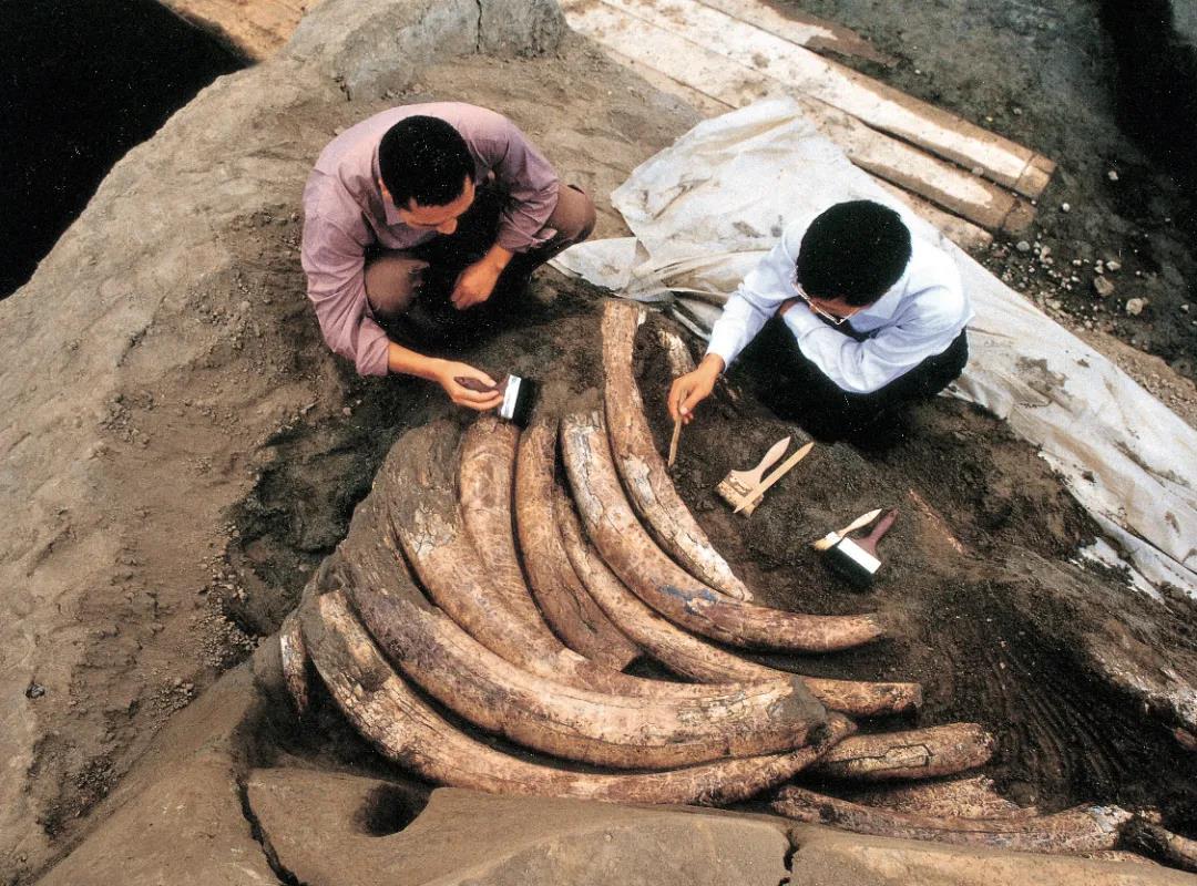 ↑金沙遗址祭祀区大型象牙坑发掘场景