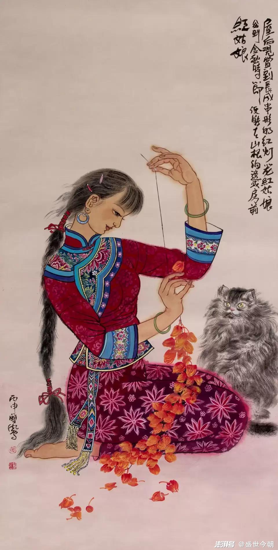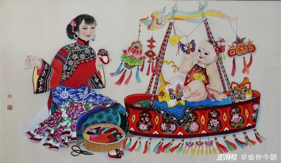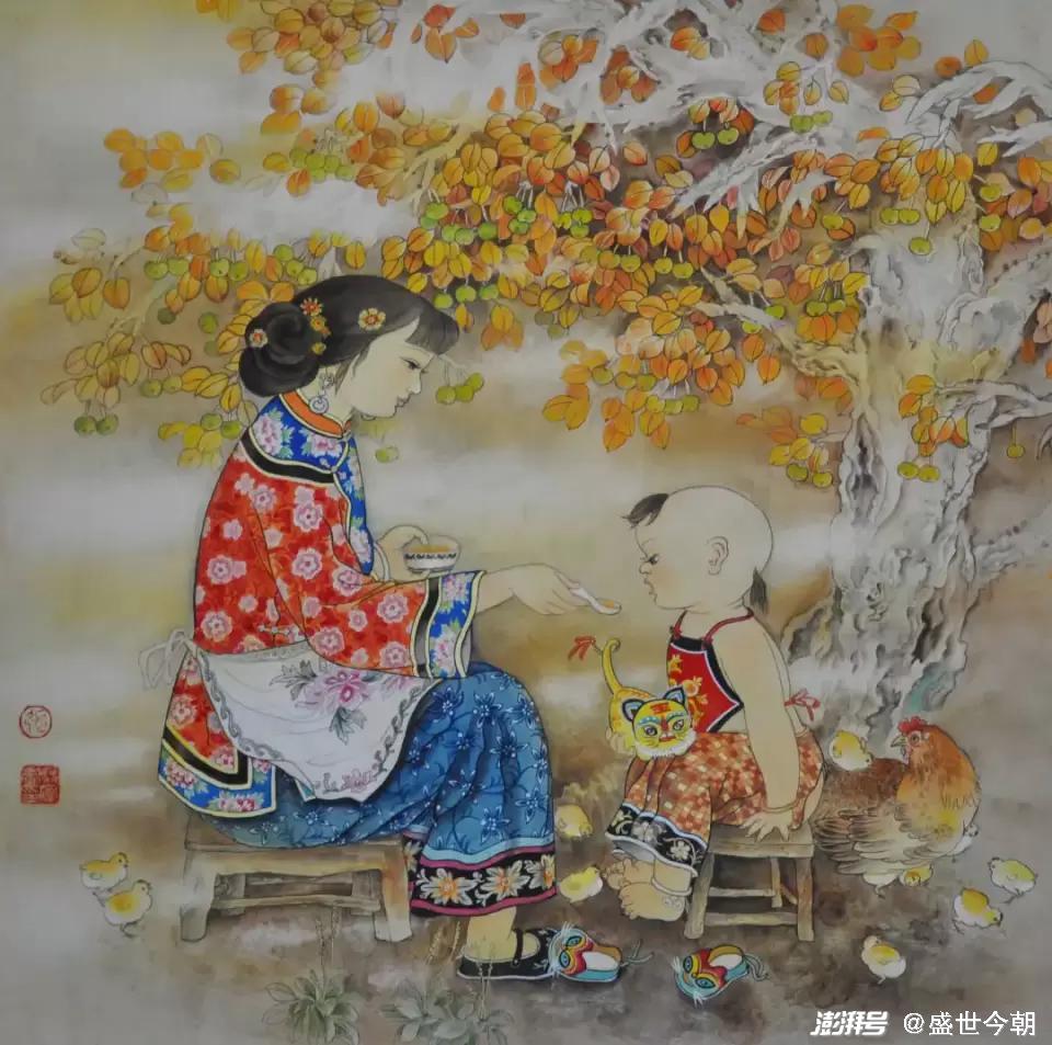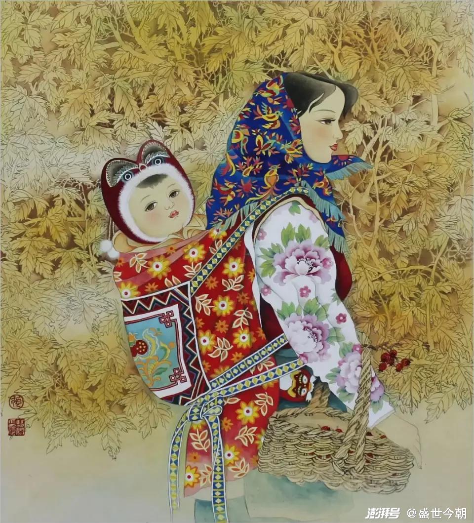 其三,只有艺术的真诚,没有女性艺术家的狭隘。张双凤始终围绕淳朴、单纯、天真、忧郁等元素来建构的审美理想,如《十月香风》《山丫》《秋语》《香风》等作品,偏爱以村姑和孩子的形象植入画面,村姑的质朴善良,略带忧郁的表情,超脱不媚俗的内在气质,代表着一种朴素美丽、原始纯真,孩子则代表着天真无邪、无忧无虑、与世无争和单纯明净。村姑和孩子已经符号化、精神化和象征化了,为人们建构了一个略带忧伤而远离喧嚣与尘俗的世界。这是张双凤站在女性的立场和视角,或之于题材的偏好、情感的侧重点去营构的。一方面时代的变迁,社会急剧变化,给人们带来了深刻影响,而女性对于生存环境、情爱感受有着天然的敏感,有所区别于男性的,但是,张双凤没有仅限于女性的视野和局限性,而是把它上升为时代所普遍缺失的情感诉求,作形而上的传达。从一定意义上而言,作品凝炼出的非凡的叙述、提炼、概括能力,其社会意义是深刻的。