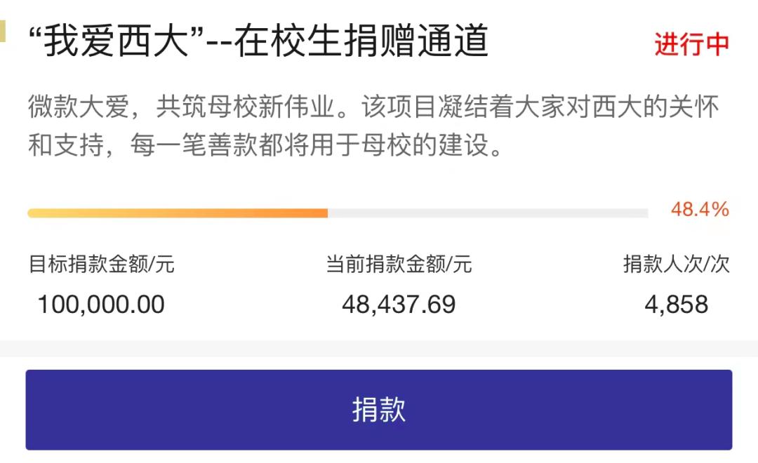 这个活动不是西大(西北大学)的首创,也是参考了国内其他高校的相关做法,很多高校也都有这样做。校友捐赠也是高校办学经费来源之一,我们也是想广泛地去动员广大校友支持学校的发展。