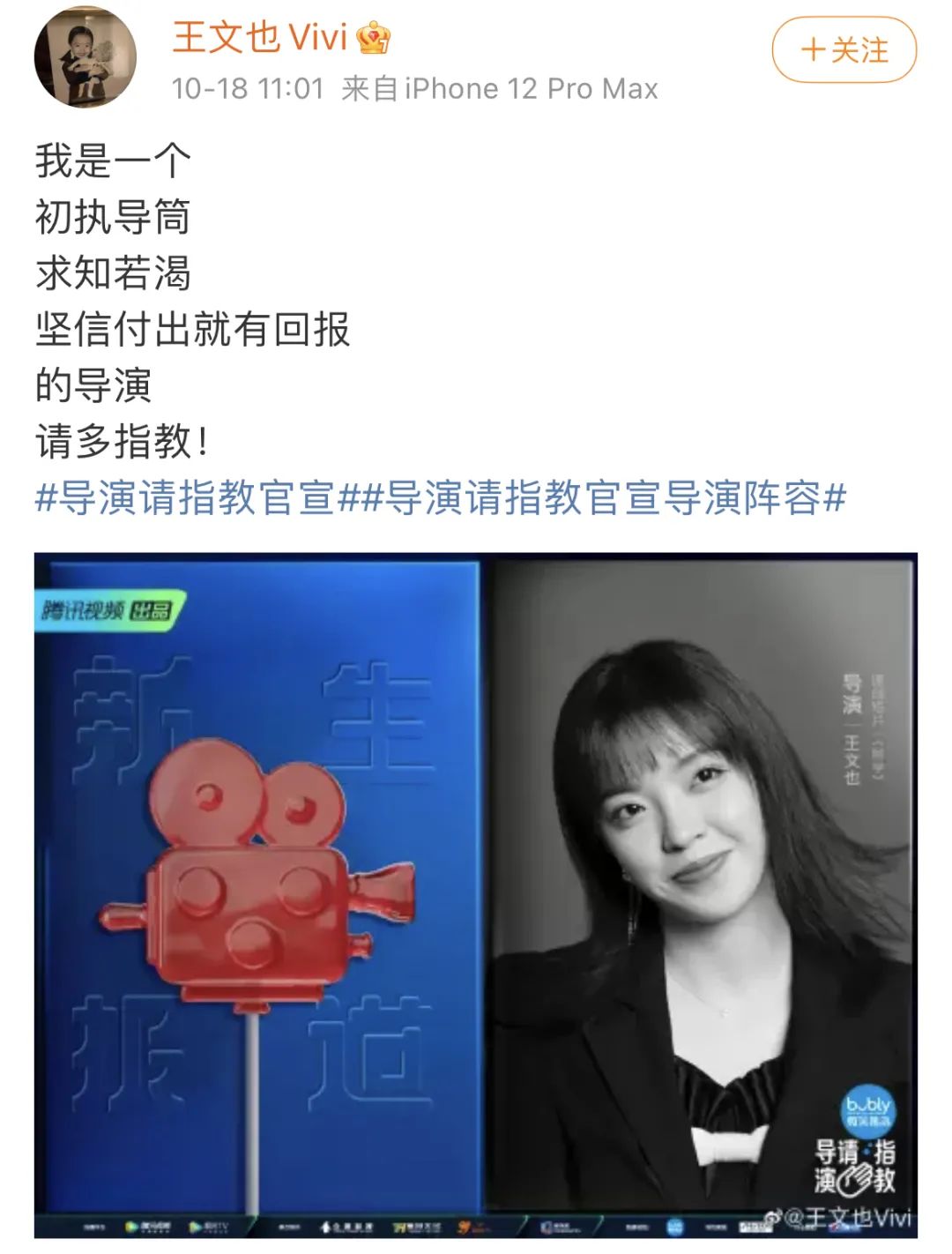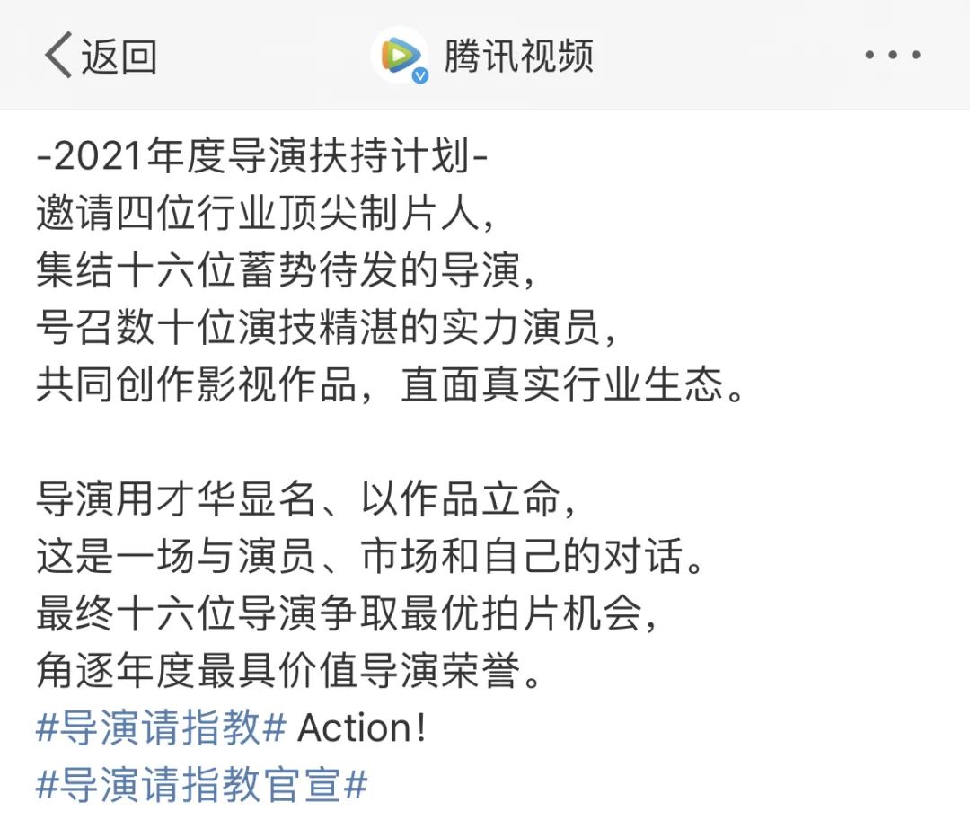 继《演员请就位》系列后,腾讯视频又推出一档考核导演的综艺《导演请指教》,将有16位导演参与角逐“年度导演”的称号。