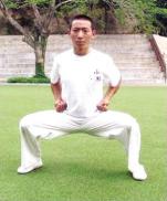 大马步:两脚开立大约三脚半,大小腿几乎成90度,保持顶平、肩平、腿平,适合熟练人群。
