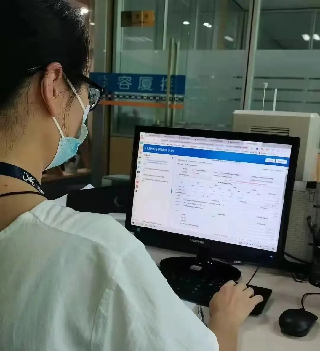 图为厦门一家制造业企业财务在电子税务局网络端进行申报操作,提前享受今年前三季度研发费用加计扣除优惠。王新宇/摄