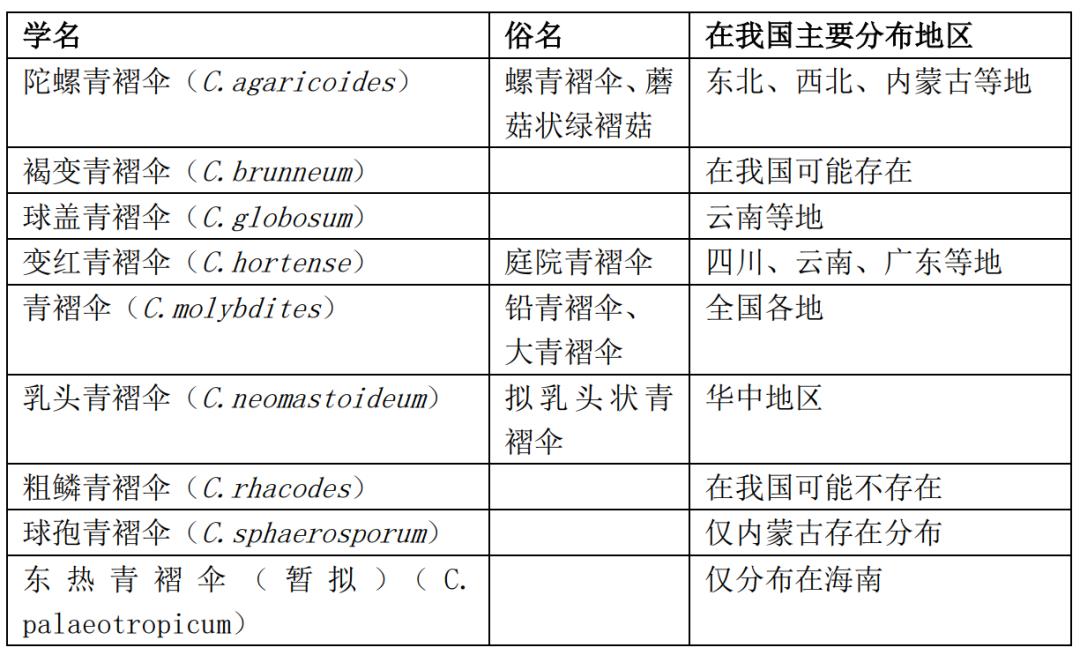 青褶伞属拉丁学名是Chlorophyllum,来源于希腊语Chloro(意为“绿色”)和phyllo(意为“叶子”,对应到蘑菇里面可以翻译为“菌褶”),在世界范围内至今仅有25个种,而我国就可能存在9种:
