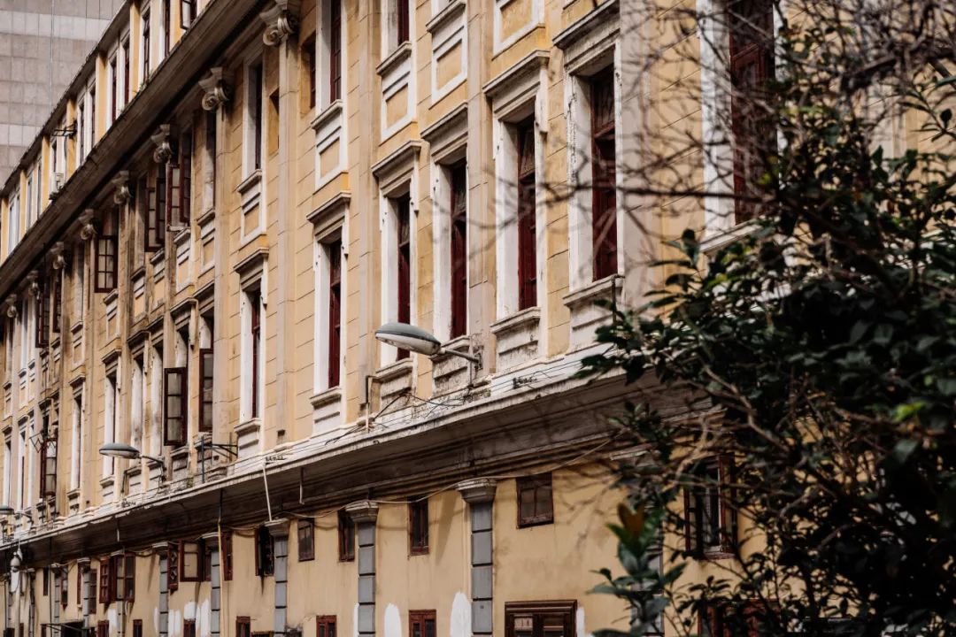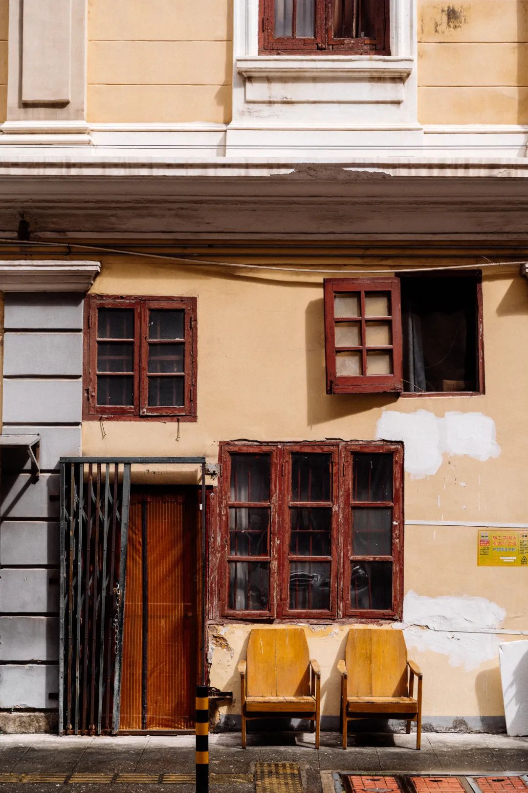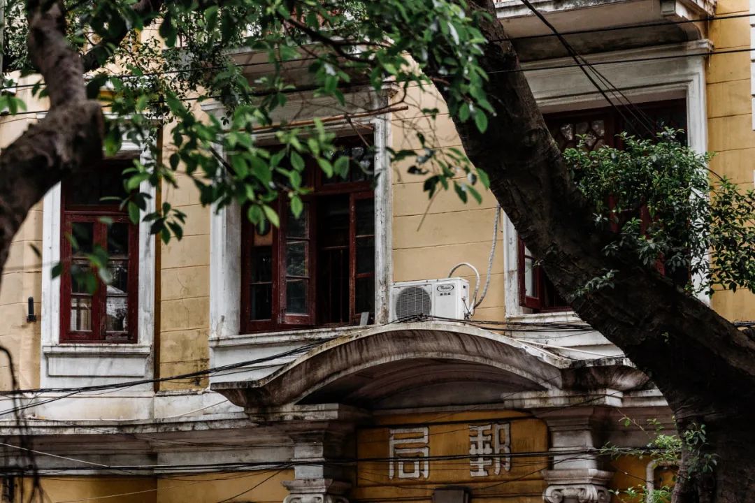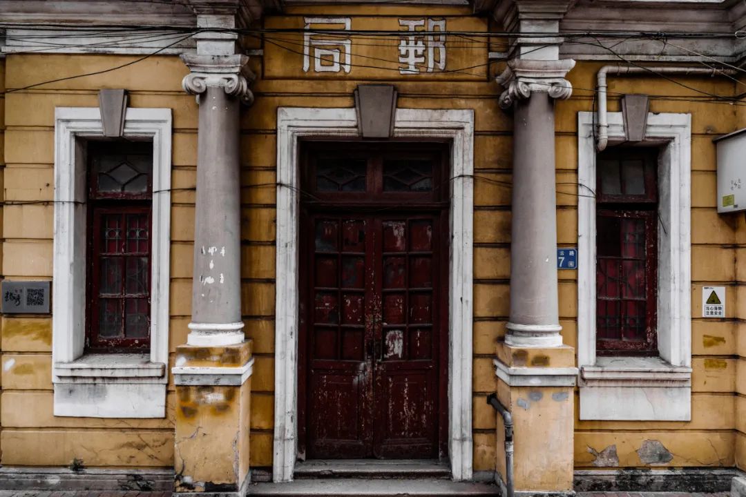 这是一栋鹅黄色的西式建筑,从前是邮局的职工宿舍,现在也仍看得到东南墙第一道门上的「郵局」二字。