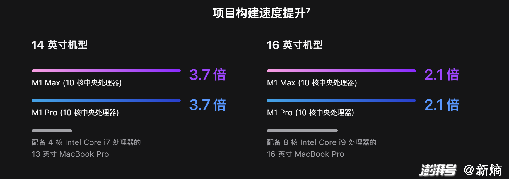 根据发布会数据可知,此次更新的M1 Pro以及M1 Max的性能十分强大,在隔壁英特尔为首的X86架构多年挤牙膏的背景下,为PC市场提供了极大的惊喜。