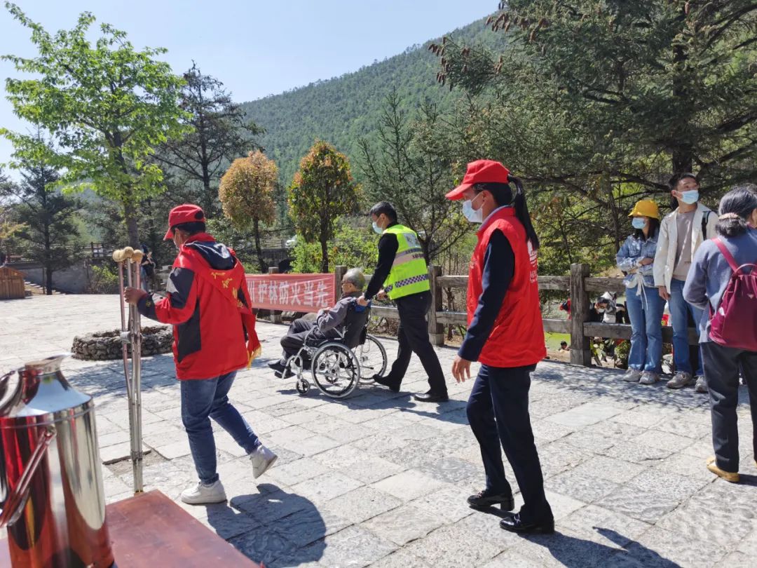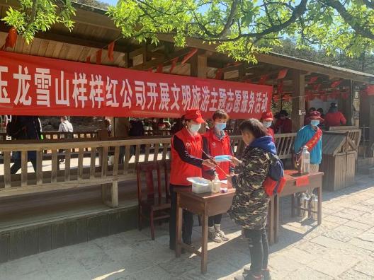 玉龙雪山景区适时开展各类实践活动,充分展现文明旅游单位风采。景区有建立健全的文明旅游志愿服务体系,玉龙雪山景区共正式注册成立12个学雷锋志愿服务队,志愿者共计1318人,累计服务时长近6万多小时,景区推进学雷锋志愿服务常态化以来好人好事达每年1万多起。景区各企事业单位还积极开展文明共建和公益活动,履行社会责任,彰显景区担当精神。