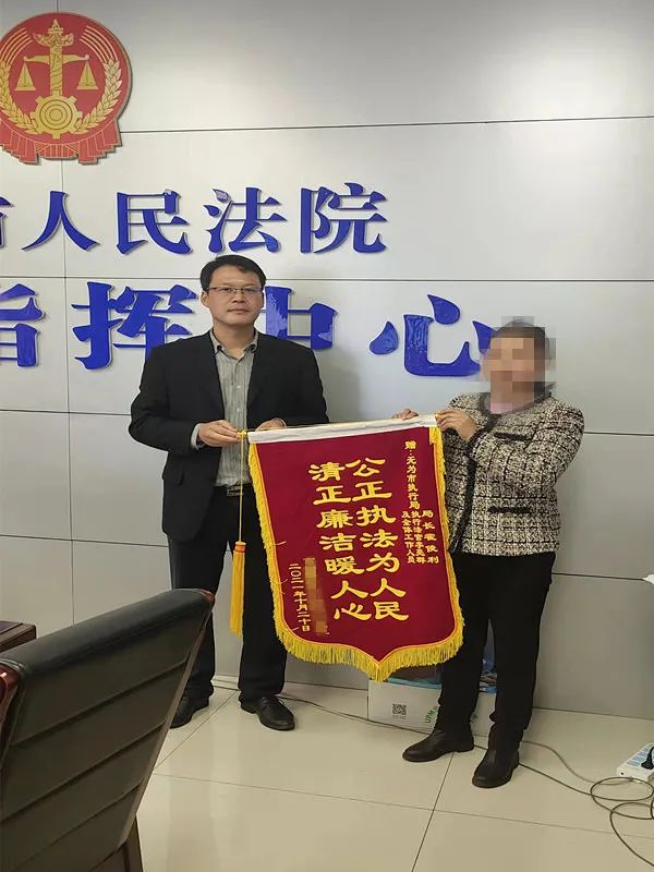 “带着对无为市人民法院的崇高敬意和无限感激,我代表我的父亲及全家向无为市人民法院院长邓甲楷、执行局局长霍俊利、执行法官李亮群及全体工作人员表示由衷的感谢”、“是你(们)用实际行动为民办了件大实事,伸张了正义,真正践行了‘司法为民 公正司法’的根本宗旨......”。