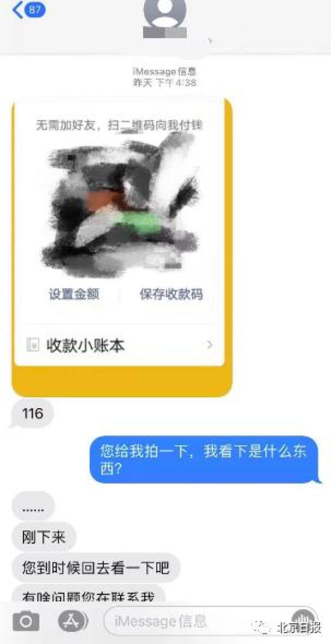 “对方在电话里说是一个40公斤的大箱子。我很纳闷,是谁发的呢?他说是顺义的李某某,电话和姓名都被遮挡了一部分。他还说,‘我都搬到你楼上了,你先交钱把快递收了,如果有问题要拒收可以再退回去。’紧接着就用短信发来了一张收款二维码照片。由于快递费金额较高,我就提高了警惕,要求核实清楚。这时,对方就说再跟客服核实一下,挂断了电话。我再打过去,对方一直是无法接通的状态了。”冯先生说。