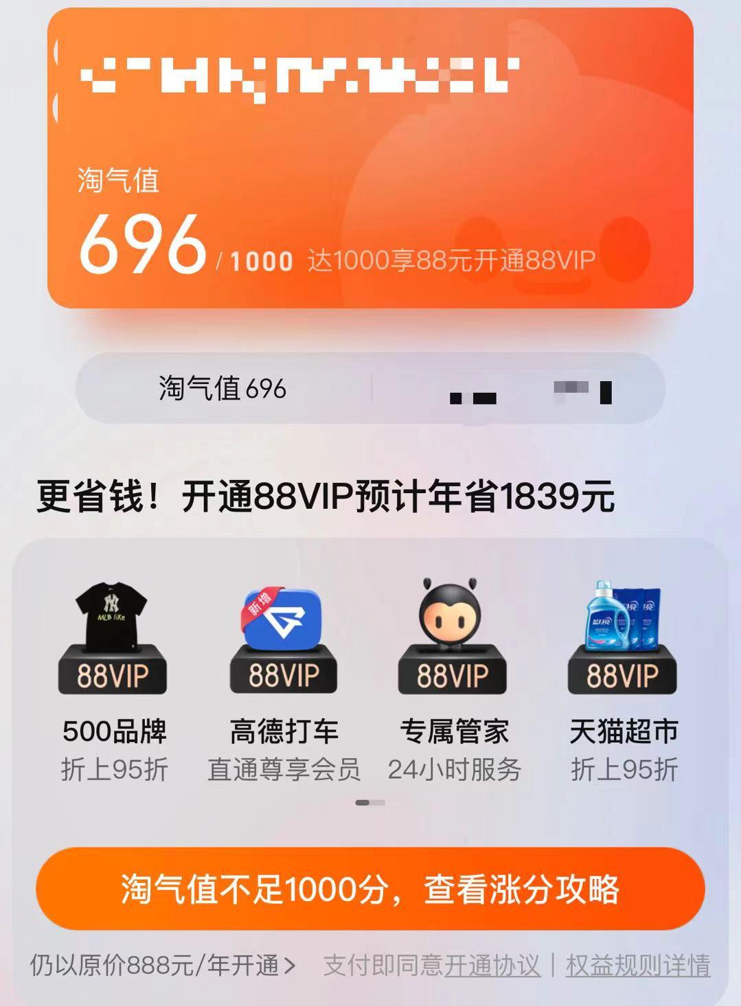 据小编了解,淘宝88VIP会员于2018年上线,用户若淘气值大于等于1000 分,可以88元的价格购入该会员年卡;若淘气值小于1000,则需要以原价888元的价格购入该会员的年卡。