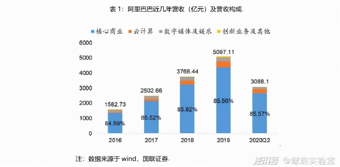 我们先来看看阿里,从其公布的21年半年报中,我们不难发现,阿里正在面临增长瓶颈。从营收组成来看,阿里的核心商业(即电商业务)一直是阿里的主营收入来源。