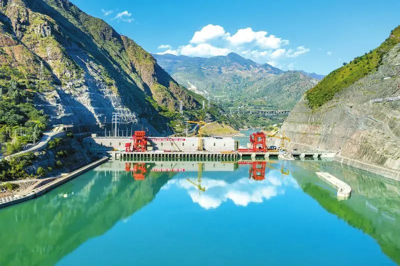 位于金沙江干流中游末端的金沙水电站,10月9日,电站四台机组已全部建成并网发电。图为金沙水电站全景。四川能投攀枝花公司供图