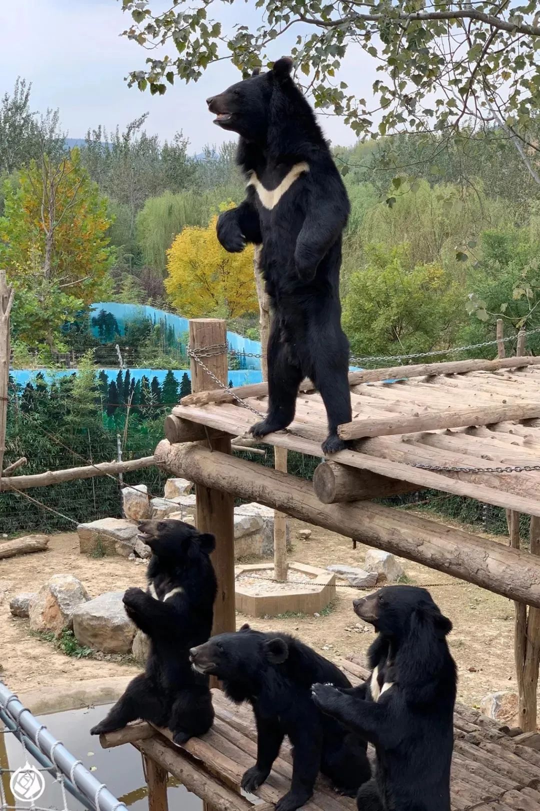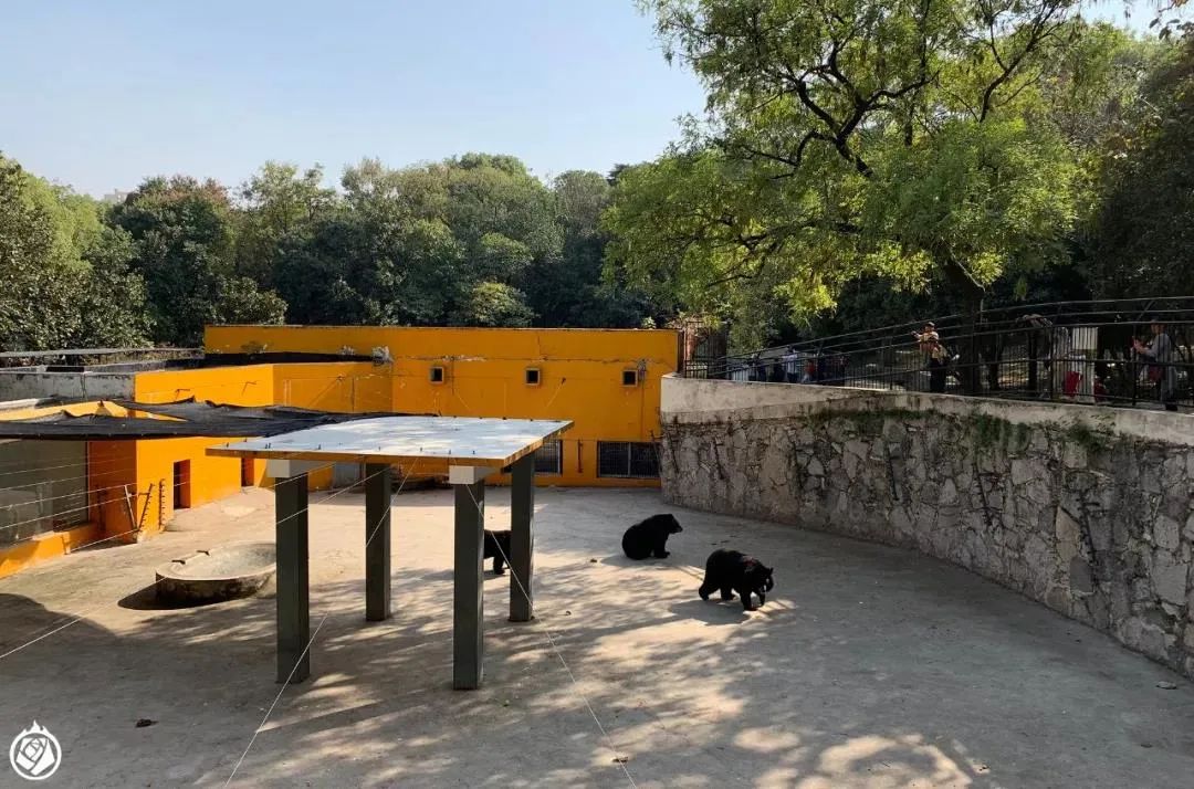 有啥可能性呢?比方说:树。大家在这个展区蹲一蹲,就能看到黑熊上爬架。但如果运气特别好,那能看到黑熊爬树。很多动物园不允许熊爬树,一方面怕树被玩死,一方面怕熊借树跑出展区。其实吧,只要展区设计得够好,管理到位,这两个问题根本不是问题。只要熊上树,游客就会看得很开心。熊爬树那不比乞食有意思一万倍?