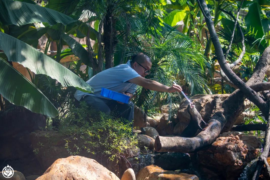 第二, 我们还能看出来,饲养员喂的东西很少。你们看他那个小盘子也装不了多少,喂也是把鱼切成小块喂。既然一次喂得少,那么一天就得喂很多次。红山本土区的饲养员,一天的喂食次数最少也有四五次,多的能到六七次。而且,像喂小爪水獭这样直接喂到嘴里的还是少数,他们饲养赤狐等动物,还会特意把食物藏起来,让动物去找。这么做,看起来是有点折腾饲养员,但是,却能让动物长期找到事情可以干,可以长期保持较为活跃的状态。这对于动物的健康,以及游客的参观感受,都是有好处的。