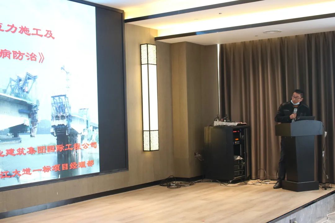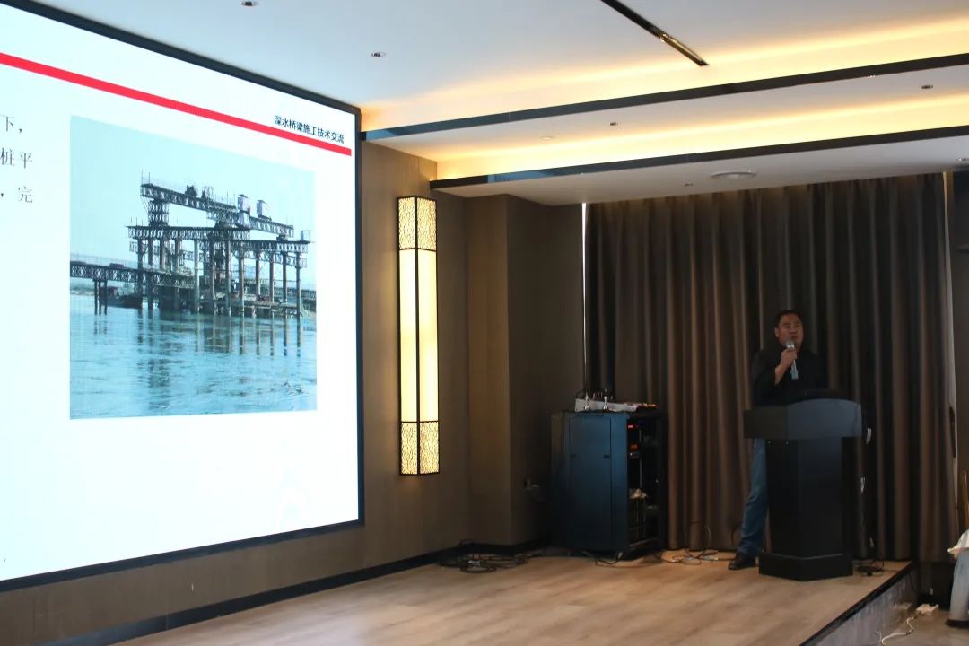 会上,基础设施公司潘诚文对《深水桥梁施工技术》进行了交流,他以郧西冷水河大桥为例,对施工方案的比选、施工方案的运用以及综合效益作了介绍;基础设施事业部孙军锋对《水中作业钢围堰技术的应用》作了交流,他从钢板桩围堰的基本概念、施工工艺、技术要点、实战案例等进行了介绍;国际公司杨发远对《连续梁预应力施工及常见质量通病防治》作了分享,他从预应力施工前技术准备、原材料及半成品质量控制、预应力施工设备、预应力制作及安装、张拉及压浆施工、常见质量问题及解决办法等方面进行了介绍;基础设施事业部孙军锋对《挂篮技术在桥梁施工中的应用》作了分享,他从挂篮施工特点与实用、施工常见挂篮、0号块、挂篮结构组成、施工步骤及施工工艺、主要工序施工方法、挂篮施工主要事项等方面进行了介绍;科技公司谭聚源对《以赣州平安大桥为例——浅析BIM技术在桥梁工程中的应用》作了介绍,他从BIM技术的基本概念、BIM技术应用(钢筋与预应力筋、BIM与有限元、参数化模型)、BIM技术的价值等方面作了分享;设计院徐俊海对《基于平安大桥工程浅谈现浇砼箱梁、钢箱梁和钢桁梁设计》进行了分享,他从现浇砼箱梁设计、钢箱梁设计、钢桁梁设计、桥梁设计要点总结等方面作了介绍。大家都拿出看家本领,在台上竞相展示,为全体参会人员奉献了一场思想盛宴。