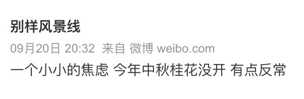 回到今年的特殊情况。这个秋天,我国不同区域都遇到了反常天气:北方的朋友在国庆节遇到了强降温,而南方则一直维持着高温状态——没有了开花前需要的低温,桂花也就选择迟开了。