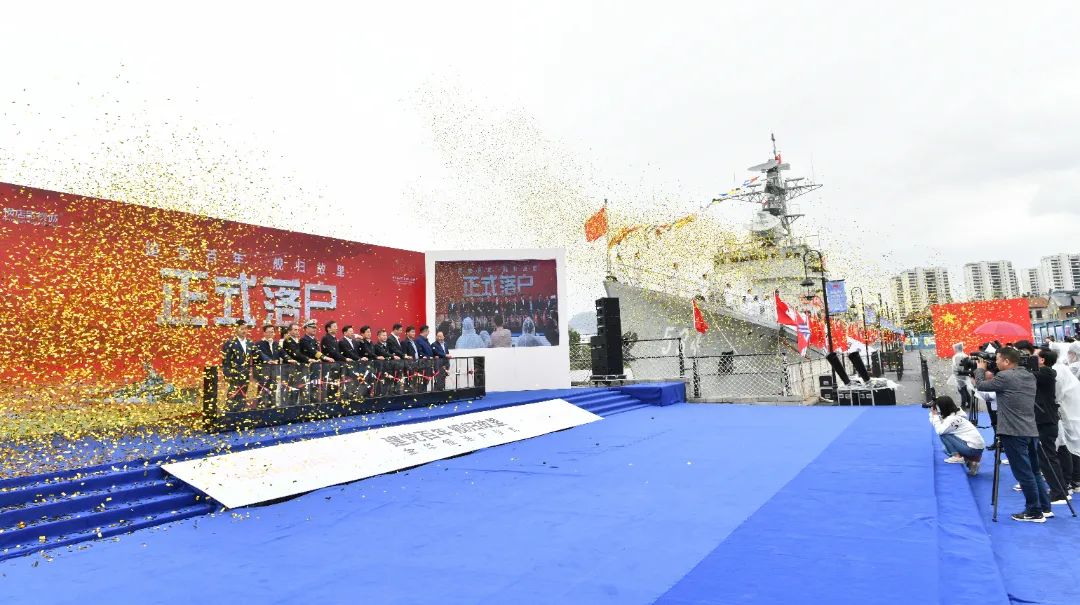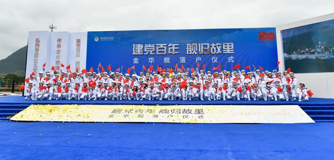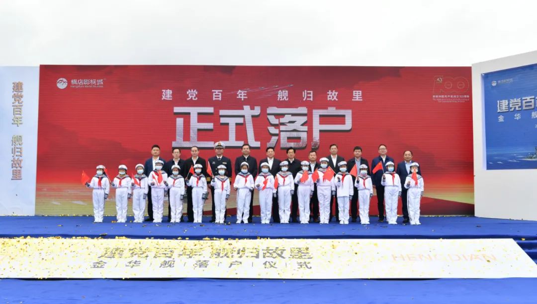 一路劈波斩浪,今朝荣归故里。10月21日上午,“金华舰”落户仪式在横店梦外滩度假区举行。省委宣传部副部长、电影局局长葛学斌,金华市委副书记、政法委书记蔡永波,金华市委副秘书长陈嵘,市领导楼琅坚、胡勇春、吴婉珍、陈小华、郭锦明、黄阳明、孙杰等参加活动。