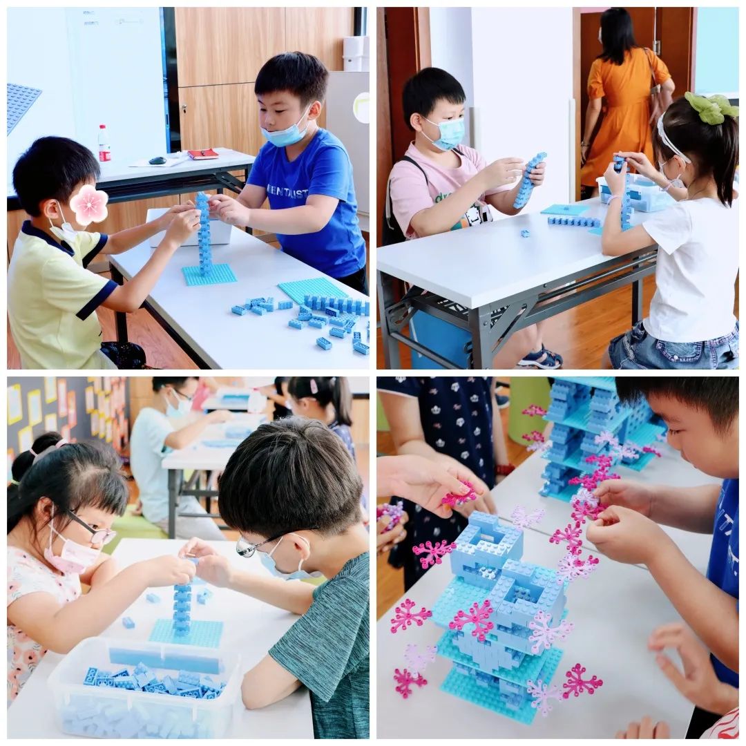 实践是检验真理的唯一标准。学了这么多知识,不如动动手吧!于是孩子们开始了第一部分的制作——空间站。首先,由老师提供空间站的底座,接着再由孩子们发挥想像力,设计搭建空间站的中间部分。伴随着激烈的讨论声,一颗颗小小的积木就被组合成千姿百态的空间站模型,呈现在大家的眼前。