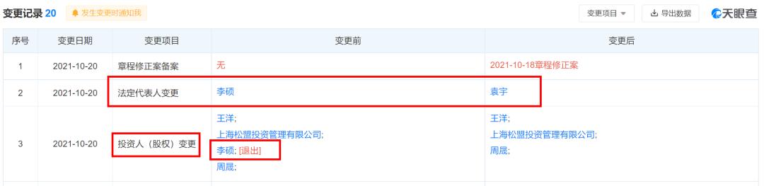 李硕变更为小股东