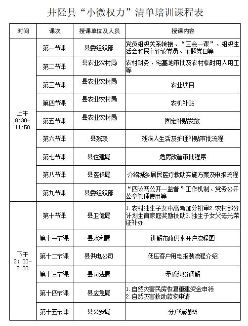 本次培训分上下两个部分,共计15节课时,分别由15个县直部门业务骨干依次登台授课,课程内容具体安排见课程表: