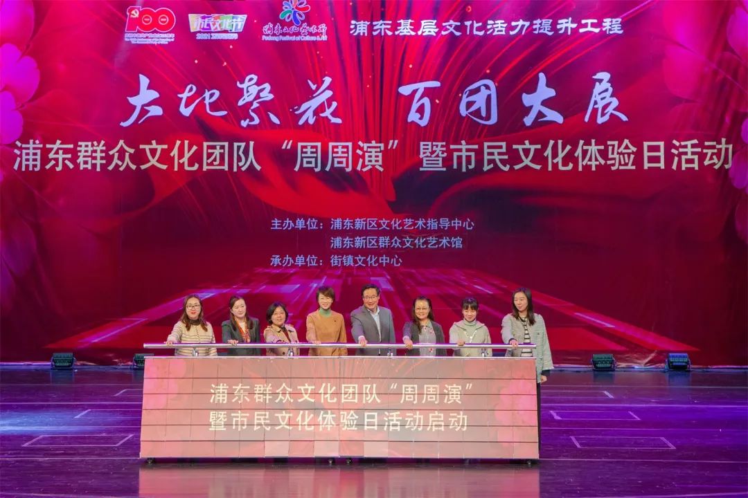 浦东新区文联专职副主席兼秘书长、浦东新区文化艺术指导中心主任王玺昌表示,为持续推进“我为群众办实事”,展示浦东群众文化建设成果,今年浦东将以“百年、百团、百场”的形式开展“大地繁花 百团大展”系列文化活动。从10月22日开始的每周五,群艺馆新馆都将举行“周周演”暨市民文化体验日专场演出,用“群众演给群众看”,让更多市民感受到浦东公共文化服务能级的提升。