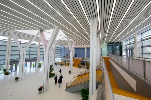 其中,浦东群艺馆新馆是浦东新区区委、政府为民办实事的重要工程,建筑总面积2.7万平方米。新馆建筑共有四层,分河西、河东两部分,中间有两处廊桥相连。河西部分的主体为大剧场和地下展厅,河东部分的主体为实验剧场、非遗馆、排练厅、艺术教室、艺术档案室、录音棚和服务保障用房等。建筑空间被划分为剧场演艺区、艺术展示区、艺术教育区、非遗传习区、数字体验区、服务保障区等六大服务功能区域。