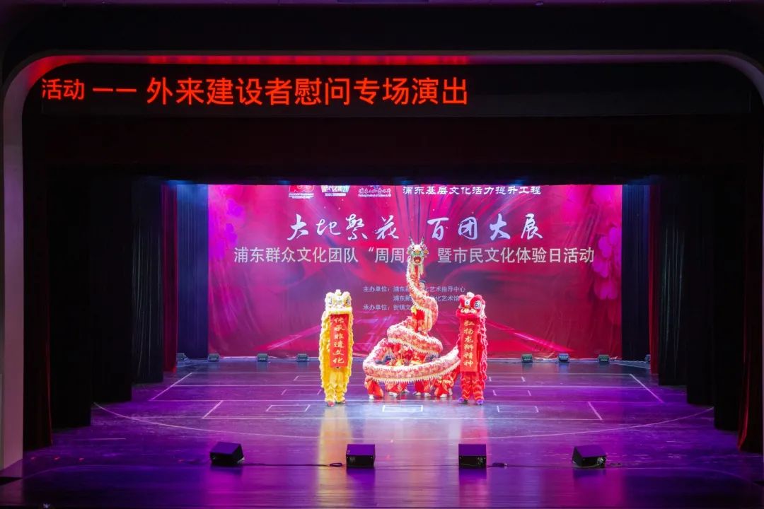舞龙舞狮《龙腾狮跃耀盛世》、扁鼓《欢乐的社区》、舞蹈《百年潮涌》……建设者们欣赏着浦东市民精彩的节目,看着自己亲手搭建起来的场馆和剧场投入使用,内心感慨万分。有建设者表示,没想到自己能成为新馆的第一批观众,他们为自己参与了这项民生工程而感到自豪和骄傲。