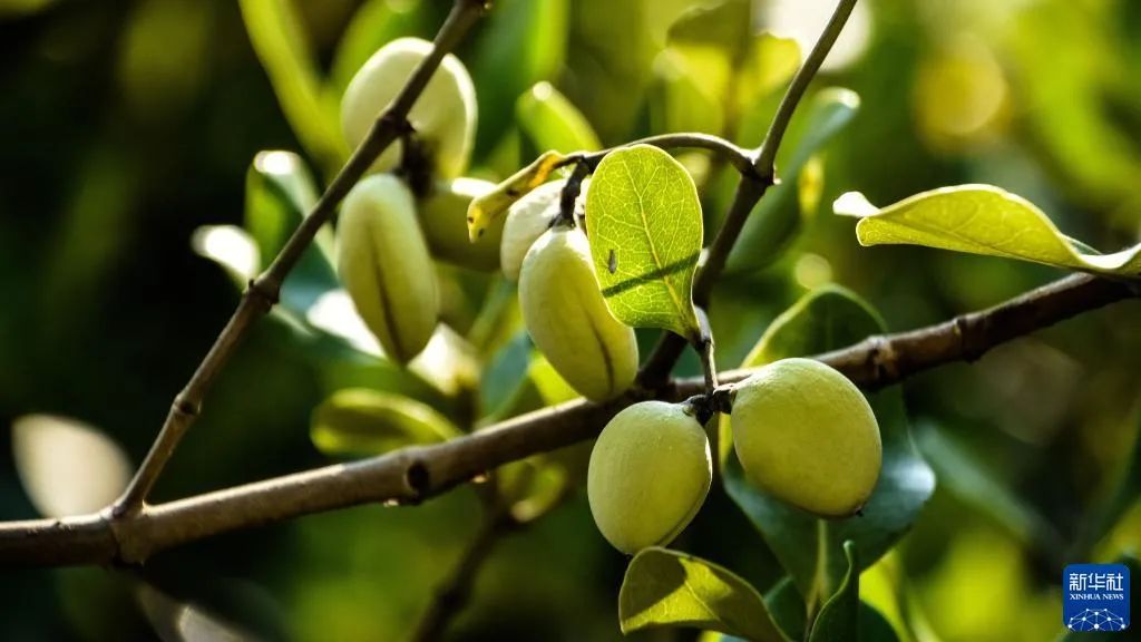▲这是红树林果实。红树林的果实直径1-2cm,是树体内发育的繁殖苗,也称为母体苗。种子可以在树上的果实中萌芽长成小苗,然后再脱离母株,坠落于淤泥中发育生长(9月30日摄)。新华社记者 张爱林 摄