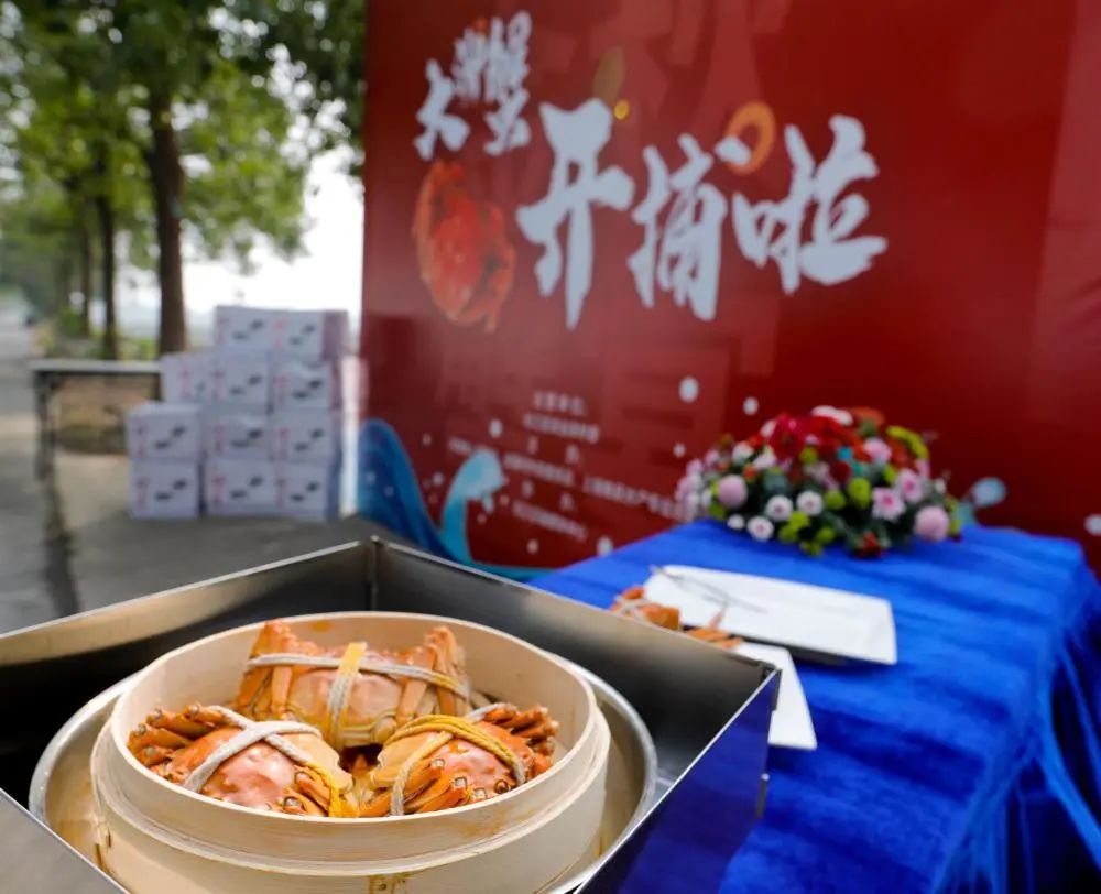 随着开捕季到来,地处田黄村的泖田湿地农家乐“品蟹宴”正式开放,吸引了很多人慕名前来。当天,设在开捕现场很是热闹,“金蟹”唱主角,村书记、驻村指导员也来出镜推介为开捕“吆喝”。