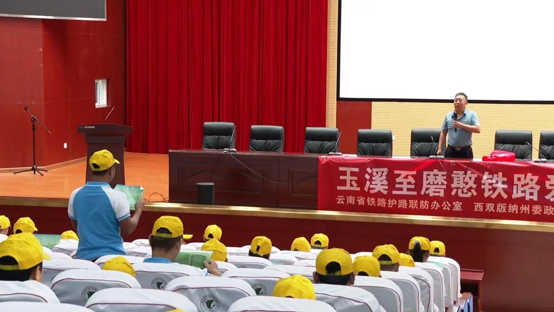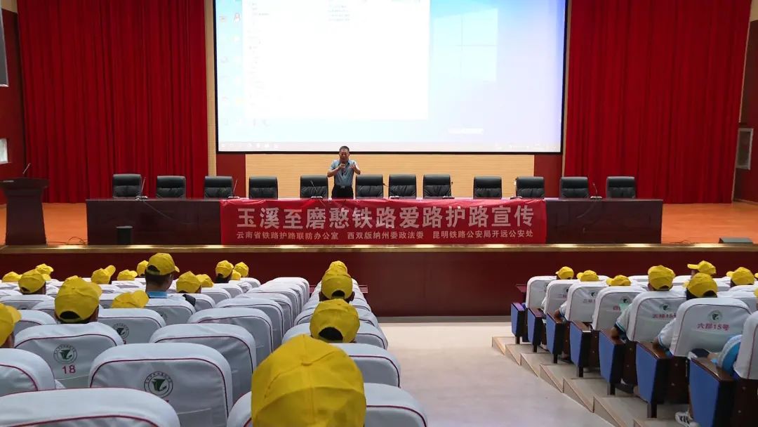 为提高沿线人民群众铁路安全常识,发动人民群众知路爱路护路,做好保通维稳工作,确保新线铁路如期建成开通,安全运营。10月20日,“玉溪至磨憨铁路爱路护路宣传”主题活动走进景洪市职业高级中学,向同学们宣讲铁路安全知识,开展铁路安全宣传教育。