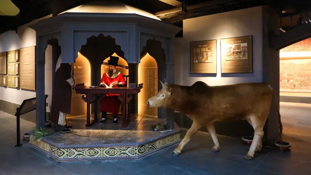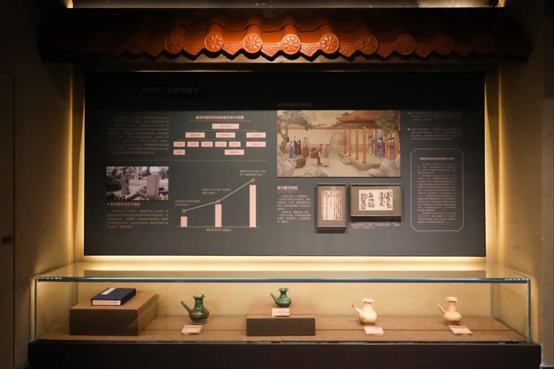 穿过朝天门与临漳门这两个宋代时期泉州标志性古城门,映入眼帘的便是泉州市舶司。展馆还原了泉州市舶司的历史场景,恰似时光流转,远渡而来的蕃商跨越了茫茫大洋,来到了舟楫往来的泉州港,换乘轻舟沿着晋江进入了泉州城,从破腹沟外划入水门关口,到岸上的“古海关”——市舶司报关,中外商贸往来由此开始。