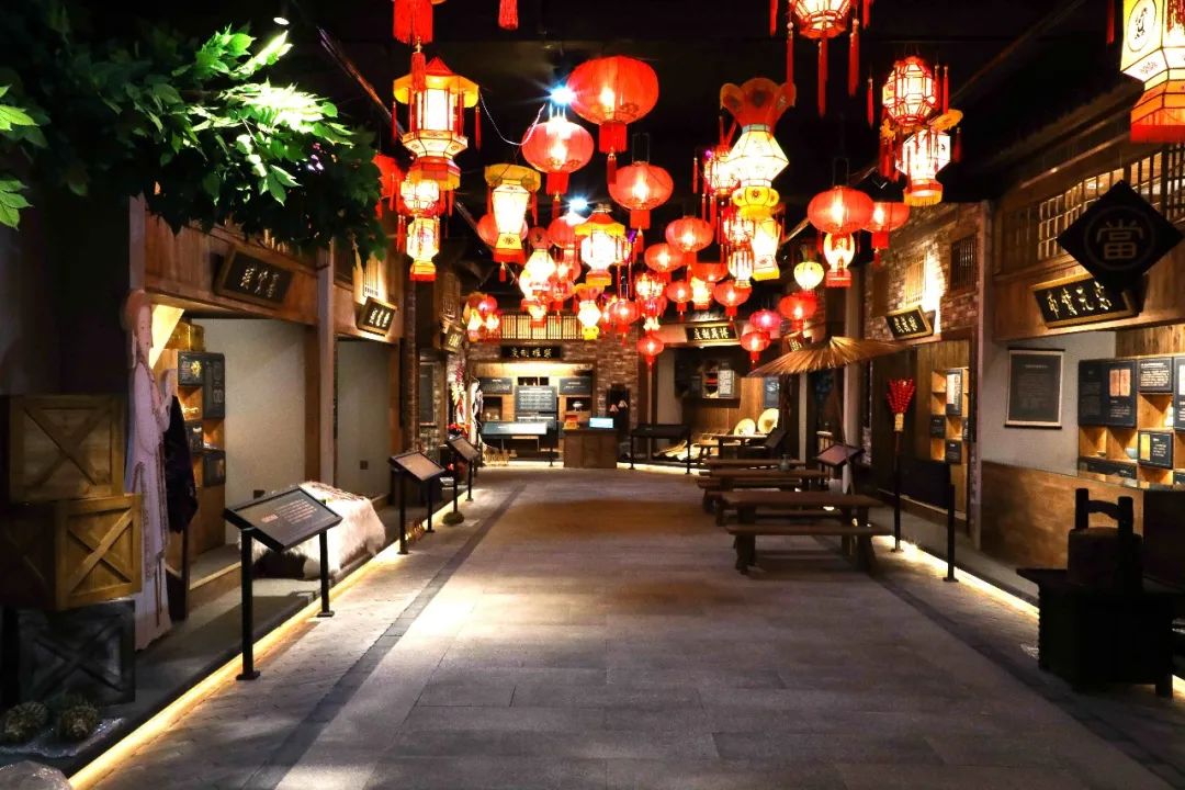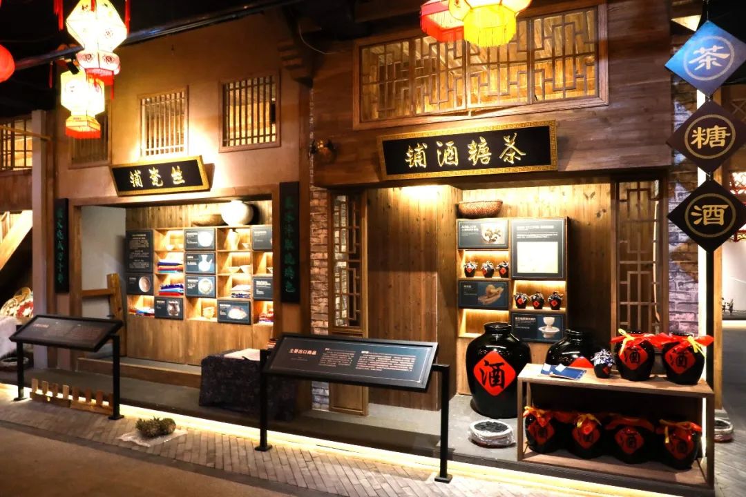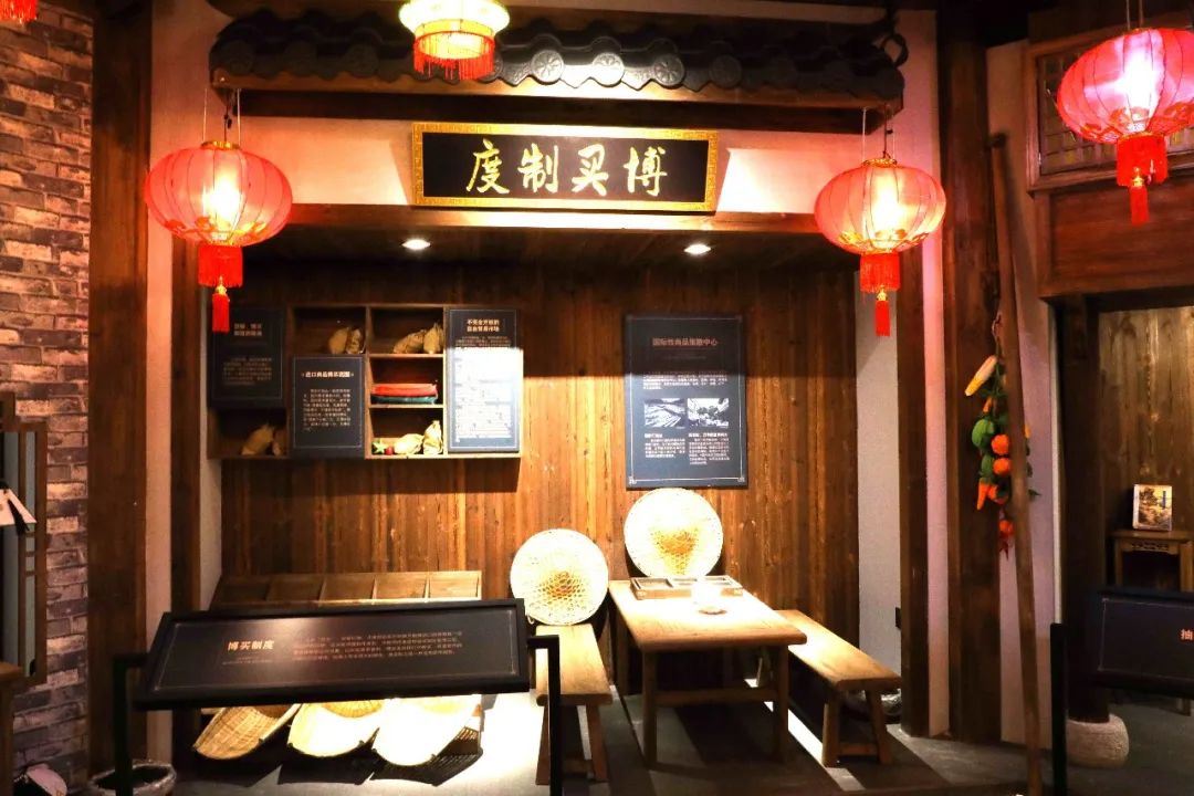 这是一条以古街店铺风格展示宋元时期商贸规则的街道,一共有九个店铺,每个店铺名称皆以商贸规则名称来命名,按游客参观顺序依次介绍了贸易规则、税收规则和货币规则,及进出口商品种类。