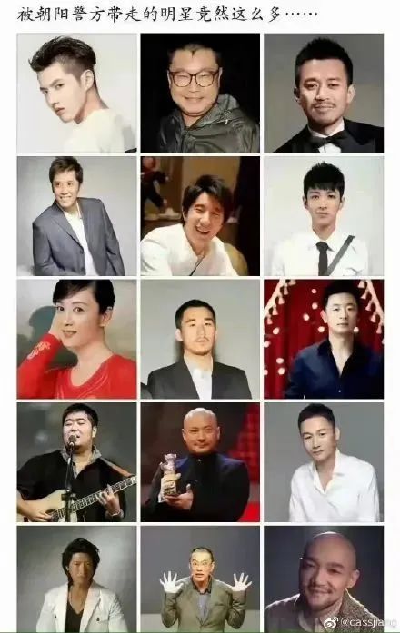据不完全统计,自2013年以来,因涉黄涉毒遭朝阳群众举报后被警方查处的明星名人有: