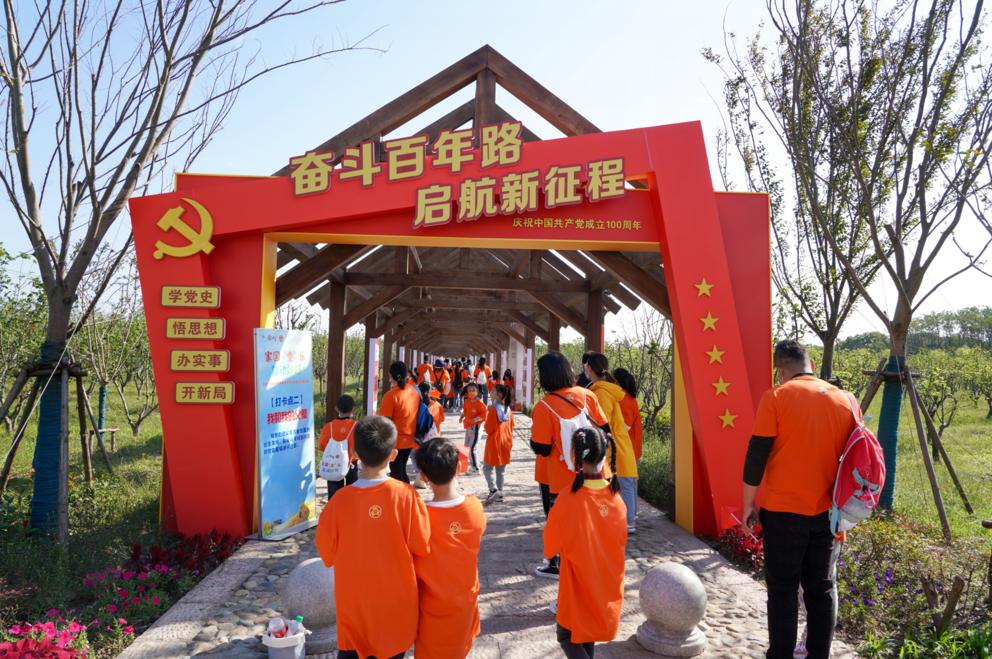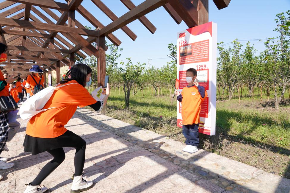 庄严的升国旗仪式后,参加活动的亲子家庭前往合庆郊野公园内的多个打卡点共同完成相应任务。在党史百年长廊,孩子们在家长带领下学习中国共产党的百年发展历程,并在一块块标有年代大事记的展板上寻找父母出生的年份,完成“我和我的父辈”这项打卡任务。