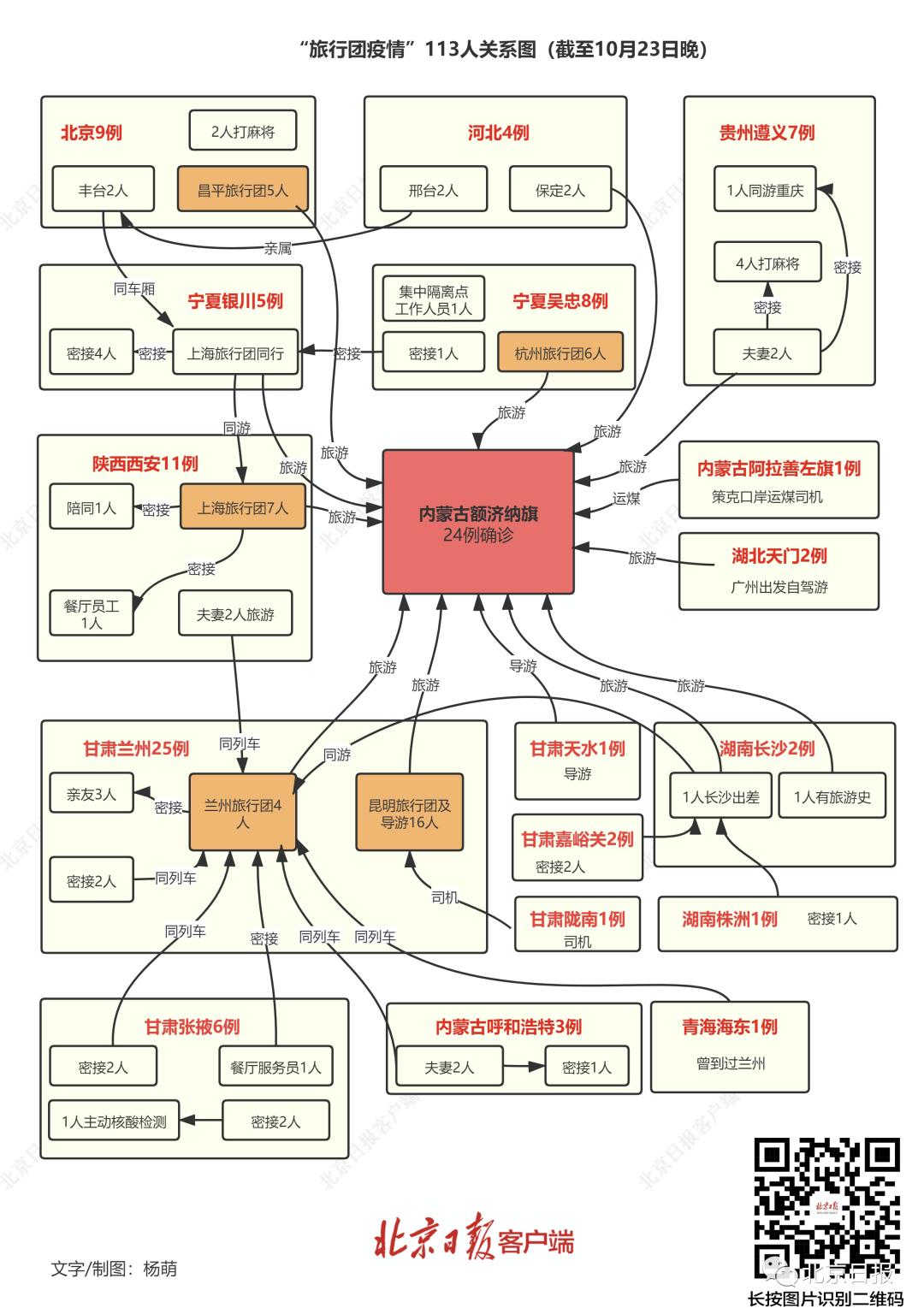 10月23日,内蒙古、贵州等多地通报新增确诊病例和无症状感染者。仅仅6天时间,本轮疫情已经波及陕西、宁夏、内蒙古、北京、甘肃、湖南、贵州、河北、湖北、青海等省区市。除内蒙古二连浩特的12名病例外,其余阳性病例都直接或间接与内蒙古额济纳旗相关,累计113人。