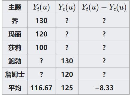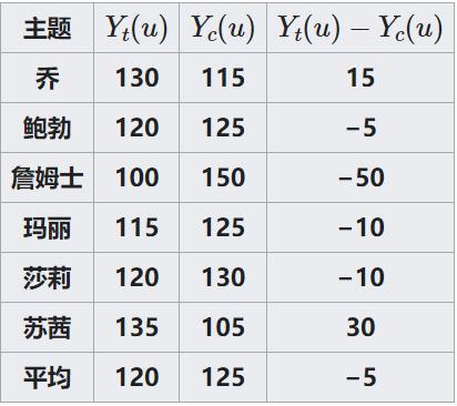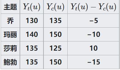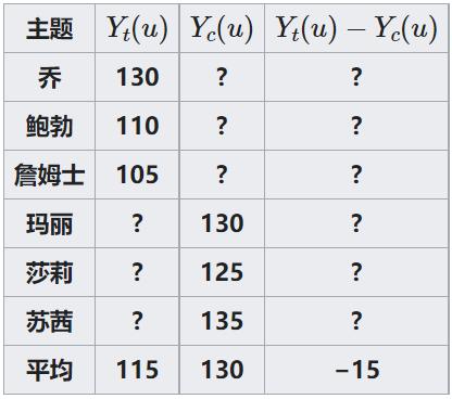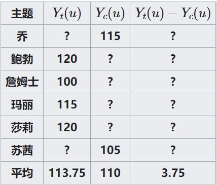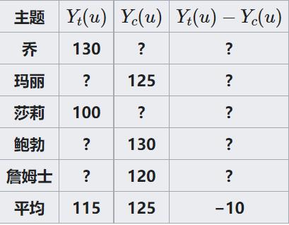 如果乔服用新药丸,Yt(u)就是他的血压。通常,该符号表示对单位u进行处理t 所产生的潜在结果。类似的,Yc(u)是不同处理t或控制c对单元u的影响。在这种情况下,如果乔不服药,Yt(u)就是他的血压。Yt(u)-Yt(u)是服用新药的因果效应。