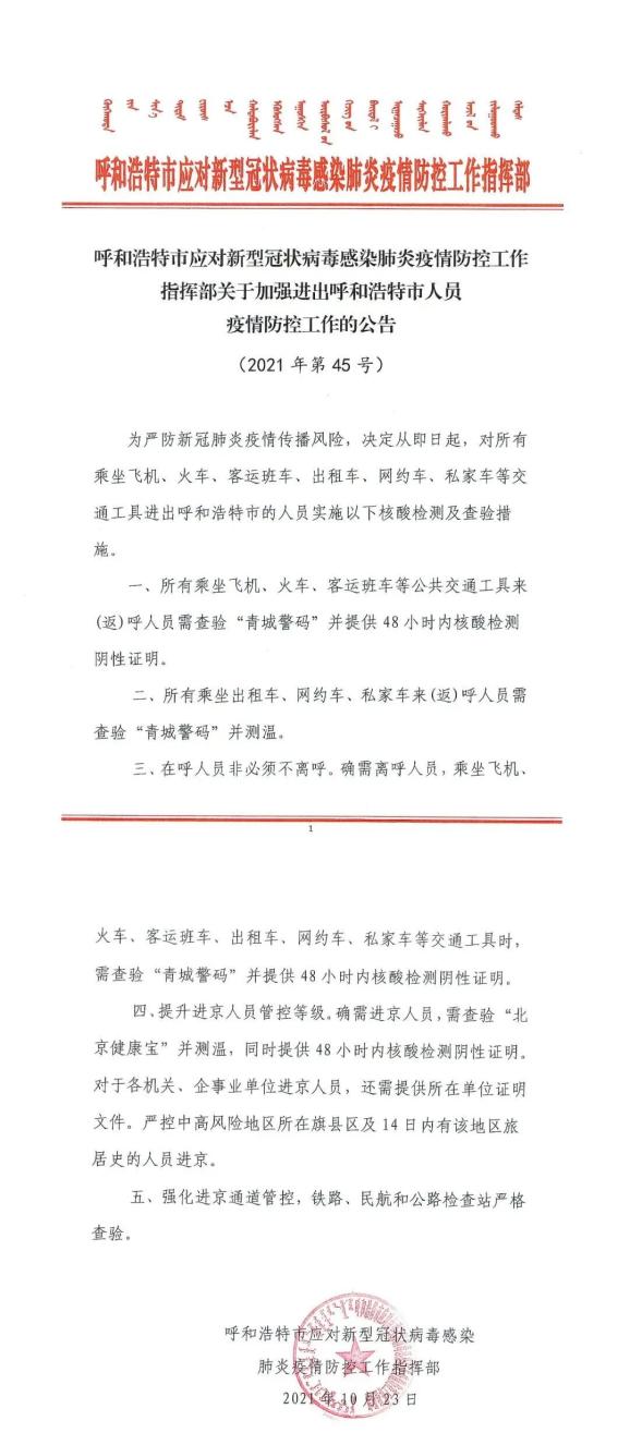 为全面做好疫情防控相关工作,保障乘客的身体健康,根据呼和浩特市疫情防控指挥部的相关防疫要求,现将呼和浩特地铁疫情防控乘车注意事项公告如下:
