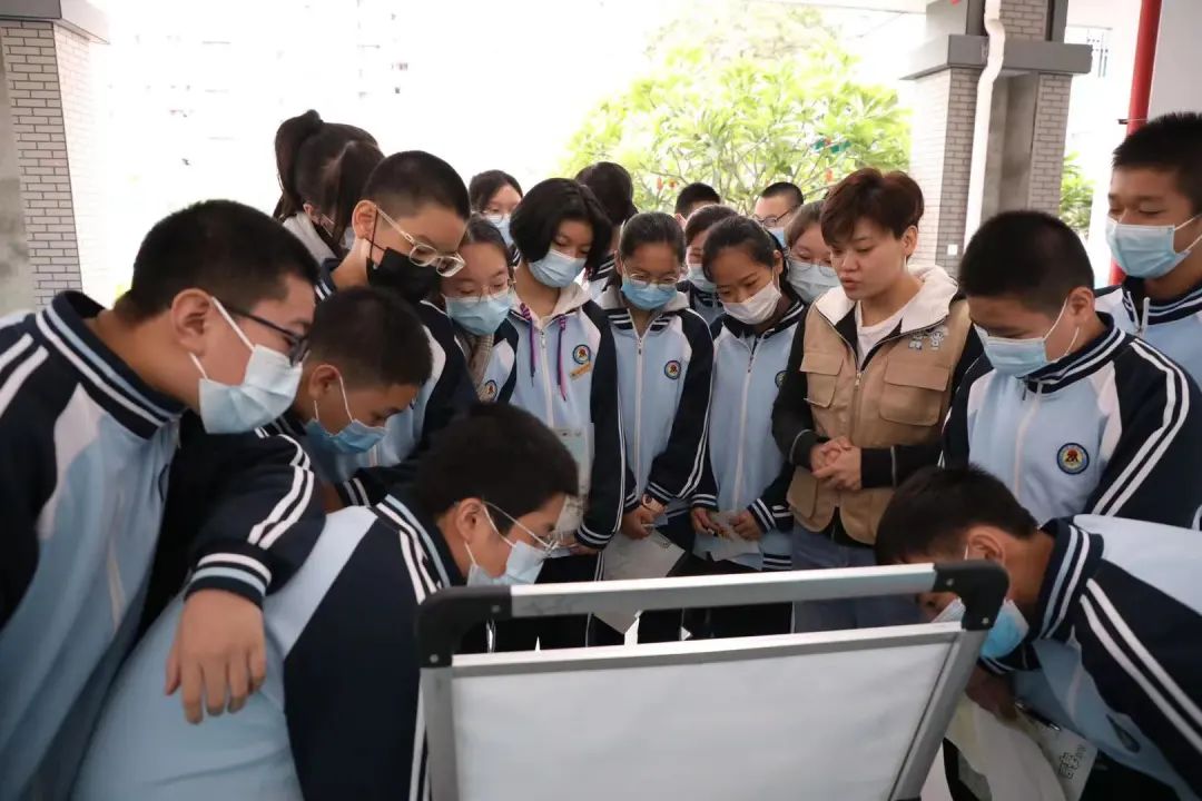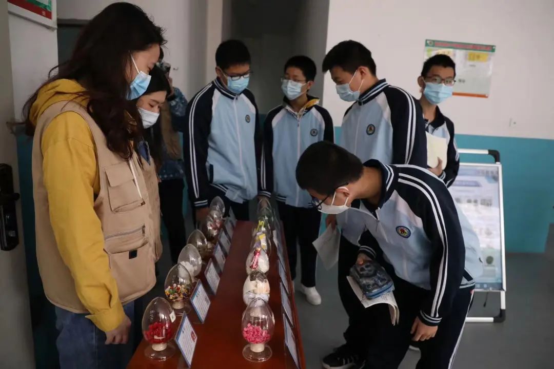 禁毒知识答题结束后,禁毒志愿者带领学生们参观“防范新型毒品对青少年危害”主题展板、与学生们问答互动、判断对错,参观仿真毒品模型及发放禁毒宣传资料,让学生们从视觉、认知上深刻学习新型毒品预防知识,了解毒品危害,将识毒、防毒、拒毒内化到日常生活中。