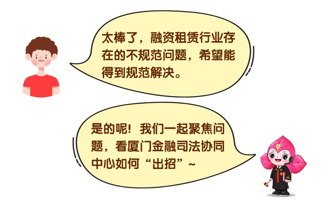 近日,厦门金融司法协同中心开展“金融风险防范与诉源治理专项行动”第四场——融资租赁行业专场座谈会,并走访相关企业,聚焦融资租赁纠纷存在的问题听取意见建议,针对存在的问题提出风险防范建议。
