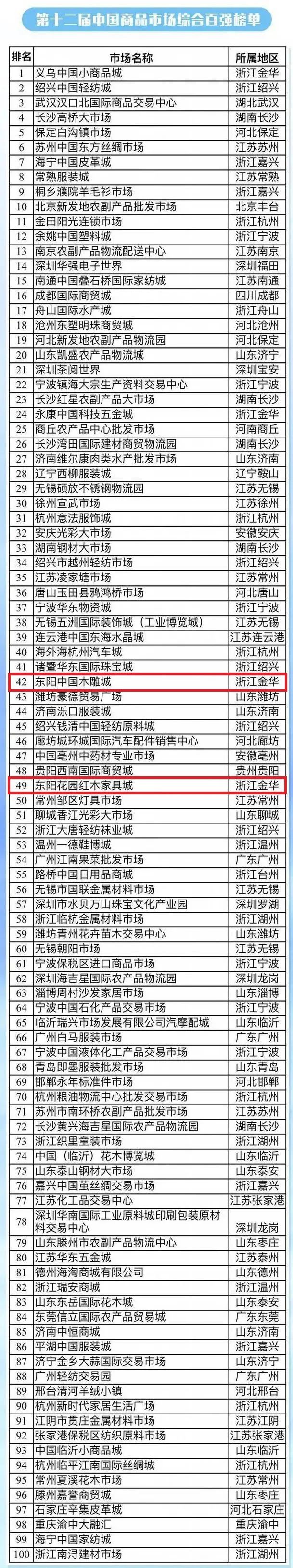原标题:《东阳这两个市场上榜!第十二届中国商品市场综合百强榜单发布》
