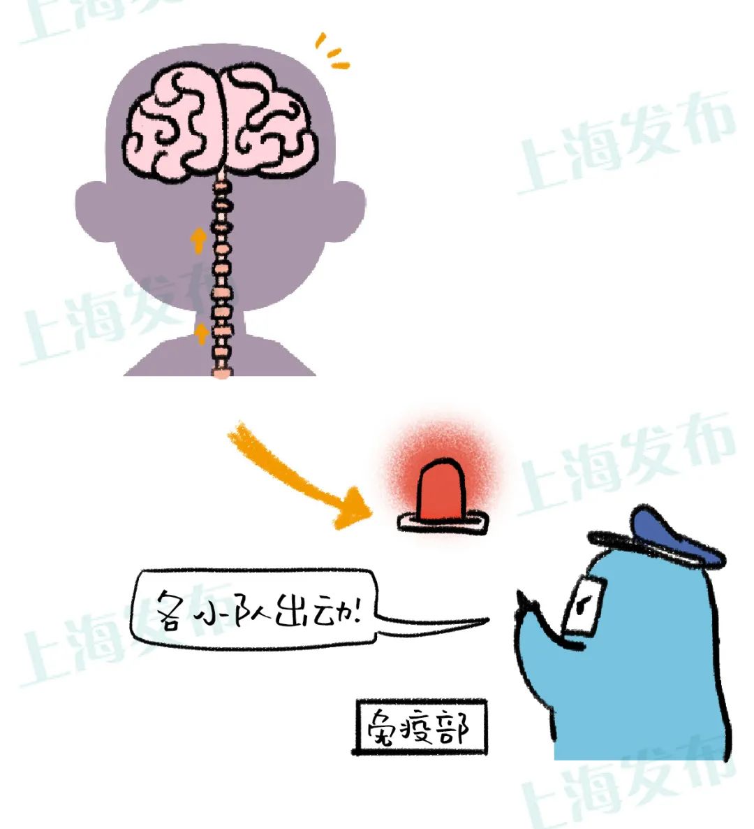 一旦神经系统汇报的问题被大脑判断构成健康风险,而且不能通过远离(例如远离蚊虫环境)而驱除风险。大脑会立刻请免疫系统去解决问题。