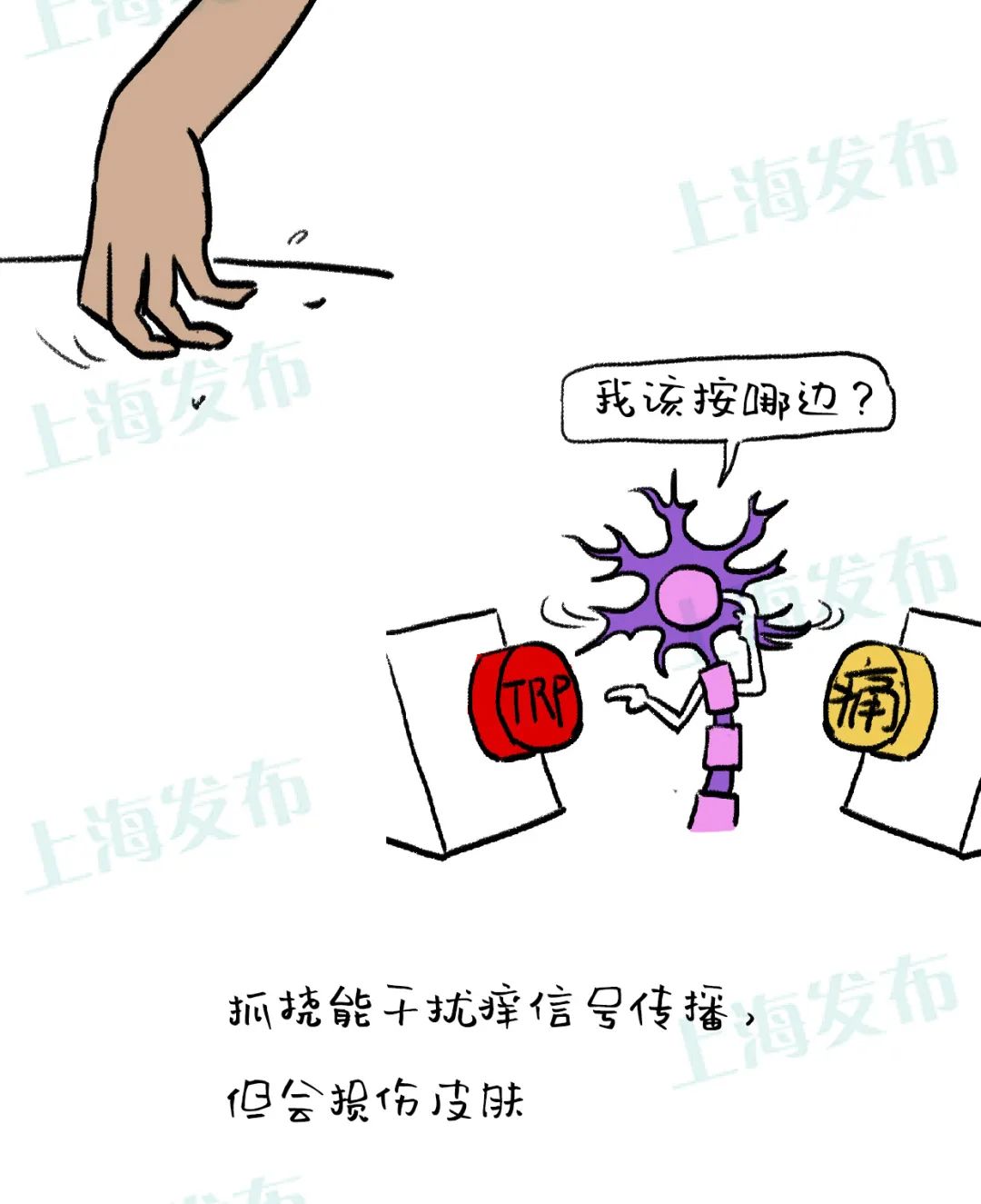 当神经系统向大脑汇报的情况不那么“紧迫”时,神经系统给大脑发出的情报就是“痒”,属于身体自我保护的一种方法。