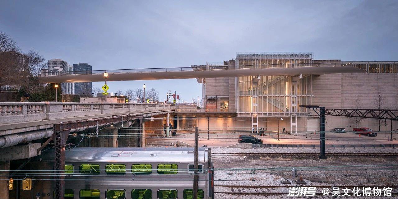 到1916年,博物馆的收藏已包括了几乎所有艺术媒介。在空间上藏品储存和展览展示互相竞争,顾此失彼,因而亟需扩建。博物馆的东墙外是繁忙的伊利诺伊州中央铁路,决策者最终定下的扩建筑方案如博物馆早期的收藏路径那样激进大胆——他们决定横跨铁路,在上面建起了两层展厅,形成了独特的风景。如值得铭记的起点那般,此后随馆藏扩张与展示重点偏移而发生的博物馆建筑的重大变动,也都有着非凡的时代意义。