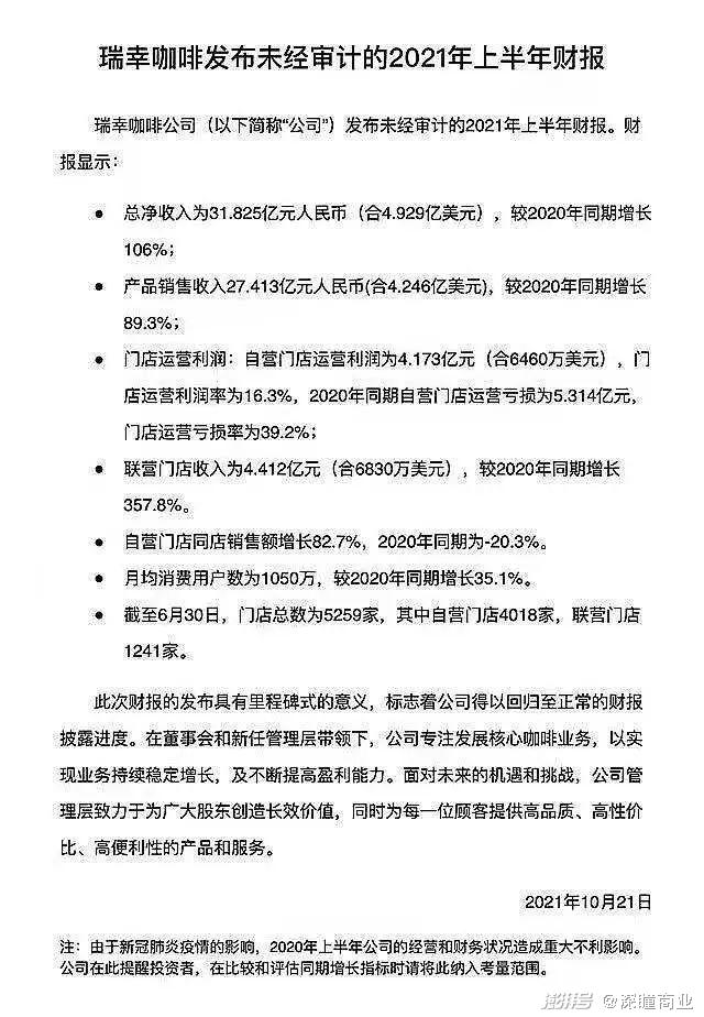 最新的消息是,瑞幸咖啡发布了一份2021年上半年的财报。