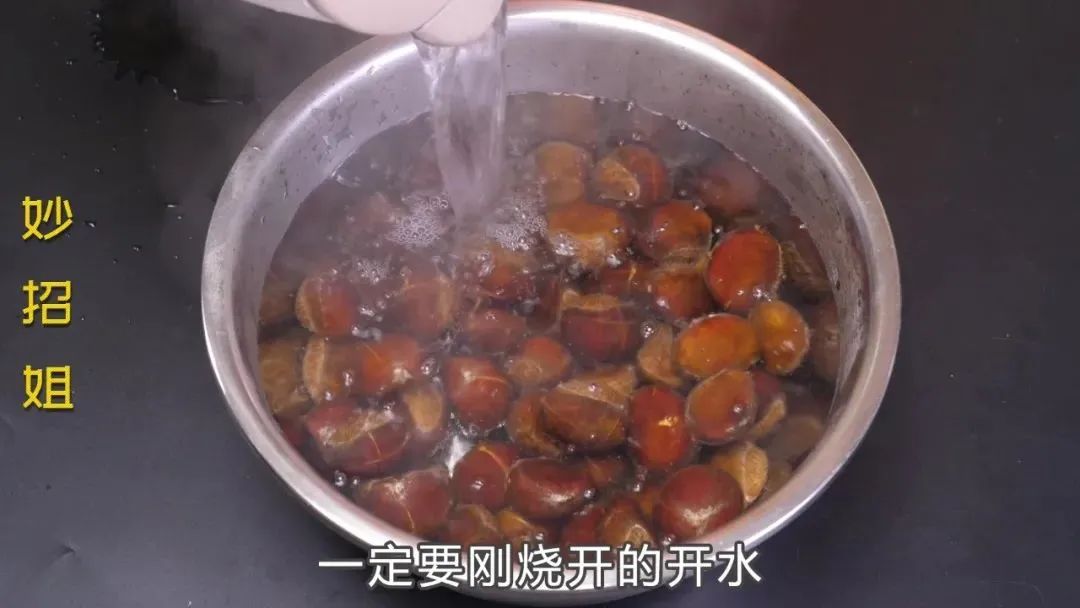 用开水浸泡可以让板栗的外壳变软,这样剥起来就不会费力了,里面的那层皮被开水浸泡后也会发胀变得容易脱落。
