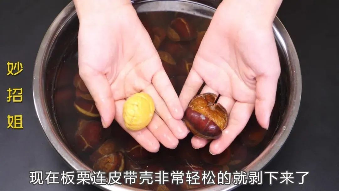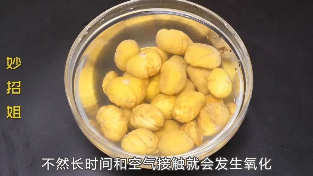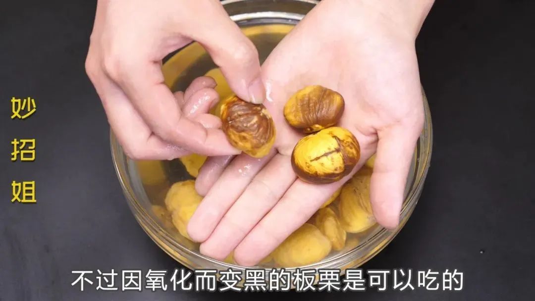 还有一个小技巧,板栗剥出来后最好将它浸泡在水里,不然长时间和空气接触就会发生氧化,导致板栗变黑。不过因氧化而变黑的板栗是可以吃的,只是外表难看了一些。